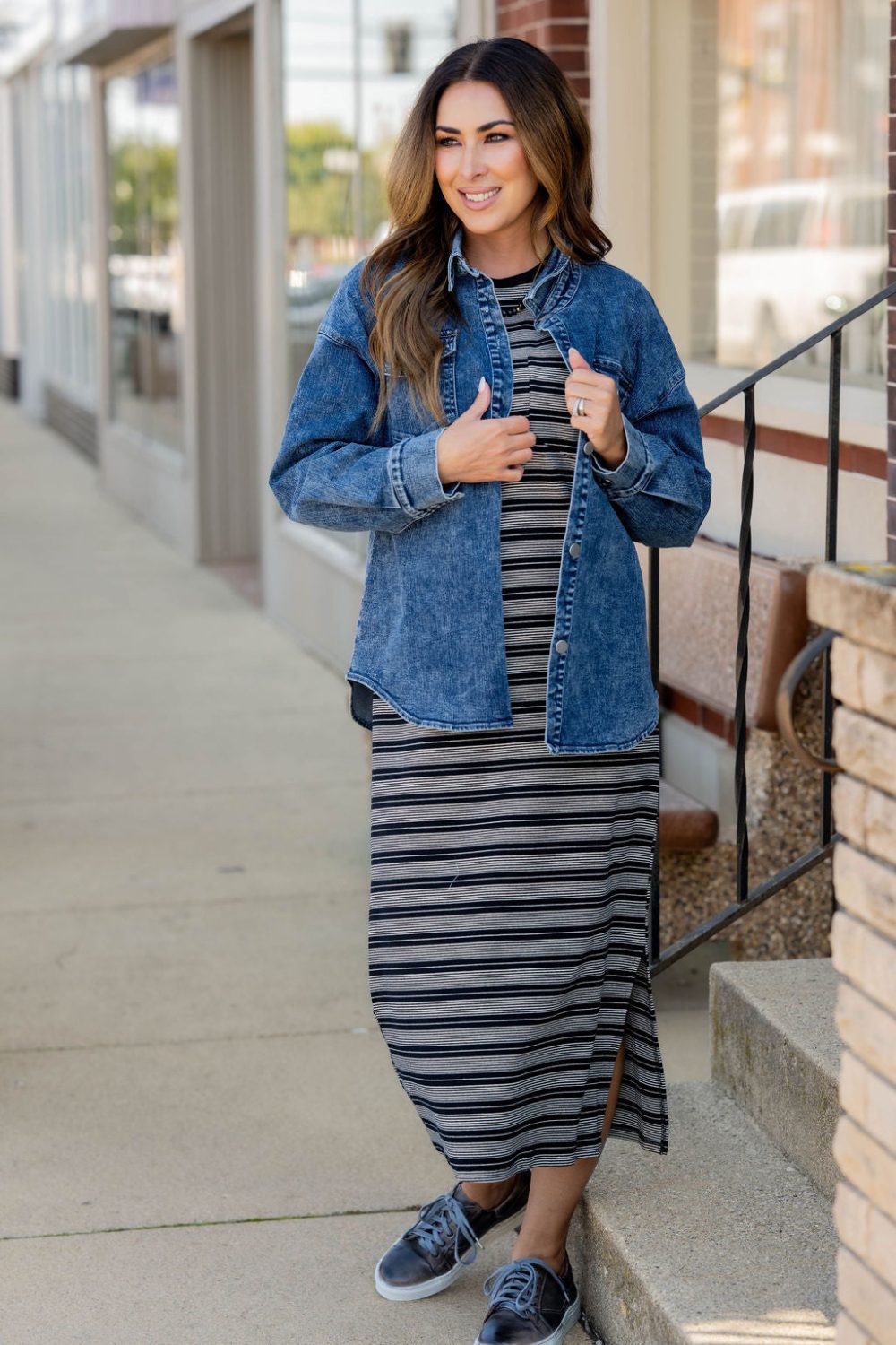 Basic enough to dress up or down to fit your style, but bold enough to stand out on its own! This dress features a maxi length, making it appropriate for the office, the classroom, or Sunday service but also features a side slit that gives a fun and flirty vibe! This dress can be worn alone for the warmer months but can easily be paired with a denim jacket or cardigan for the cooler ones! With so many ways to style, we just know this dress will surely become a staple piece in your closet!