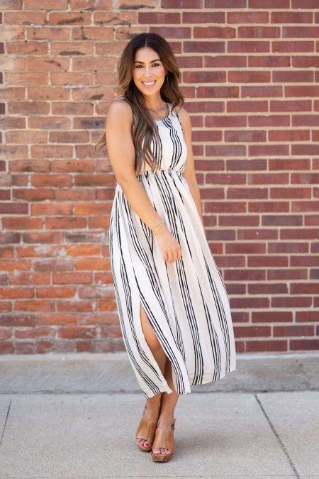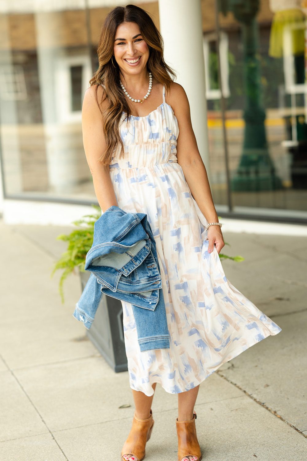 This fun and feminine brush stroke printed tank dress has a sweetheart style top and a maxi length that can take you from work, to church, or date night with ease! Pair this with sandals in the warmer months or add a cardigan or denim jacket and booties in the cooler ones! We love that this can be styled for a more elevated occasion or worn casually for an everyday look!
