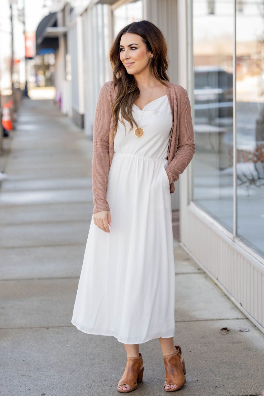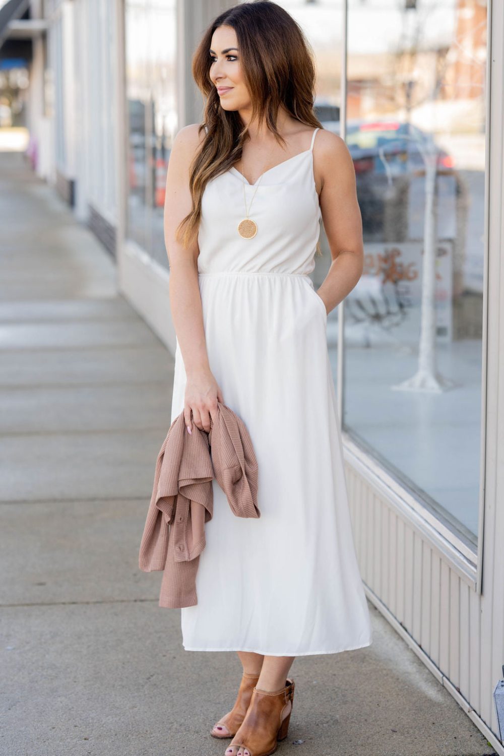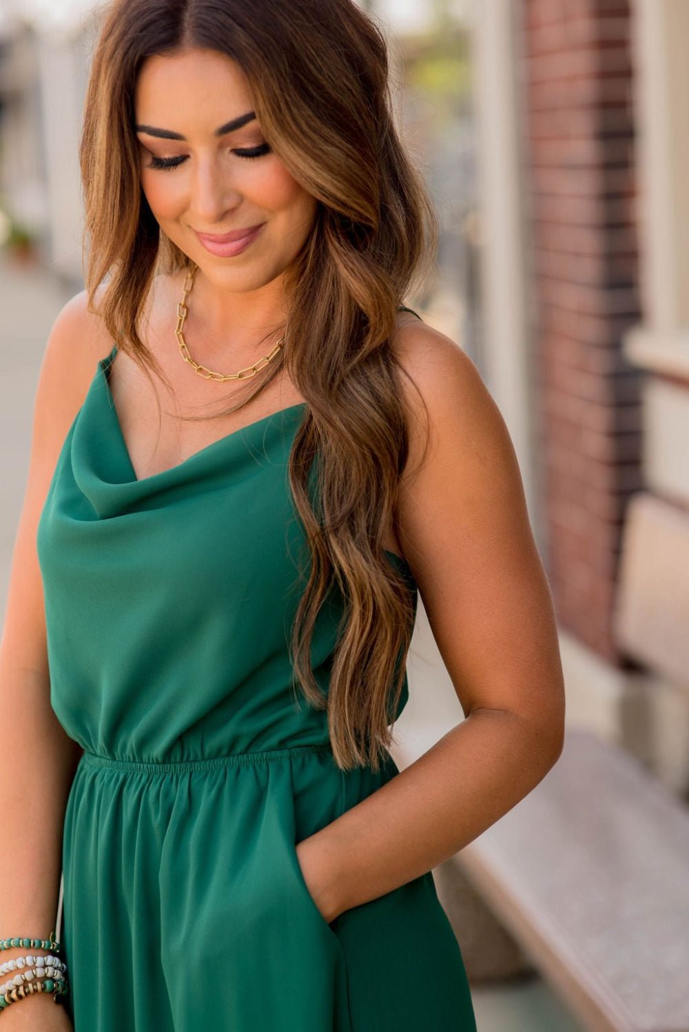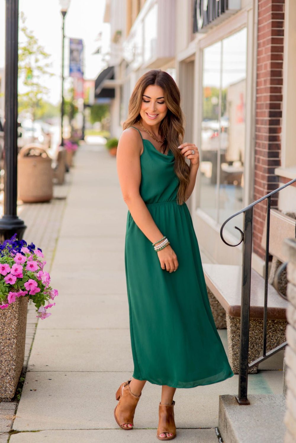 Basic enough to dress up or down to fit your style, but bold enough to stand out on its own! This dress features a maxi length, making it appropriate for the office, the classroom, or Sunday service but also features a drape style collar that gives a fun and flirty vibe! This dress can be worn alone for the warmer months but can easily be paired with a denim jacket or cardigan for the cooler ones! With so many ways to style, we just know this dress will surely become a staple piece in your closet!