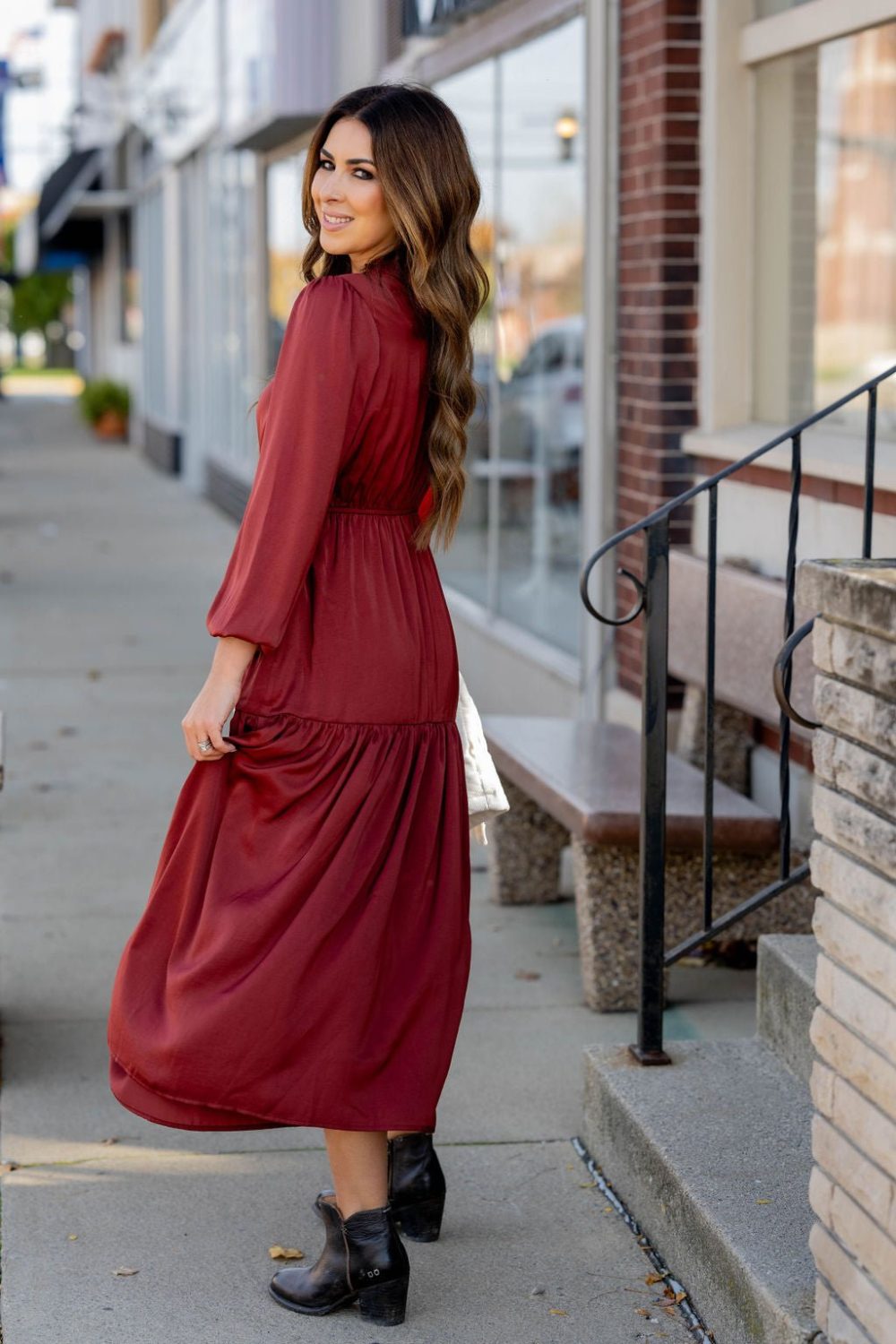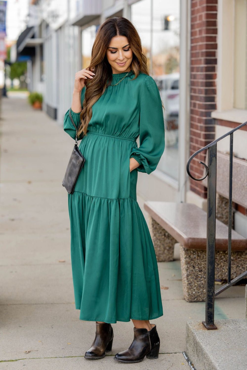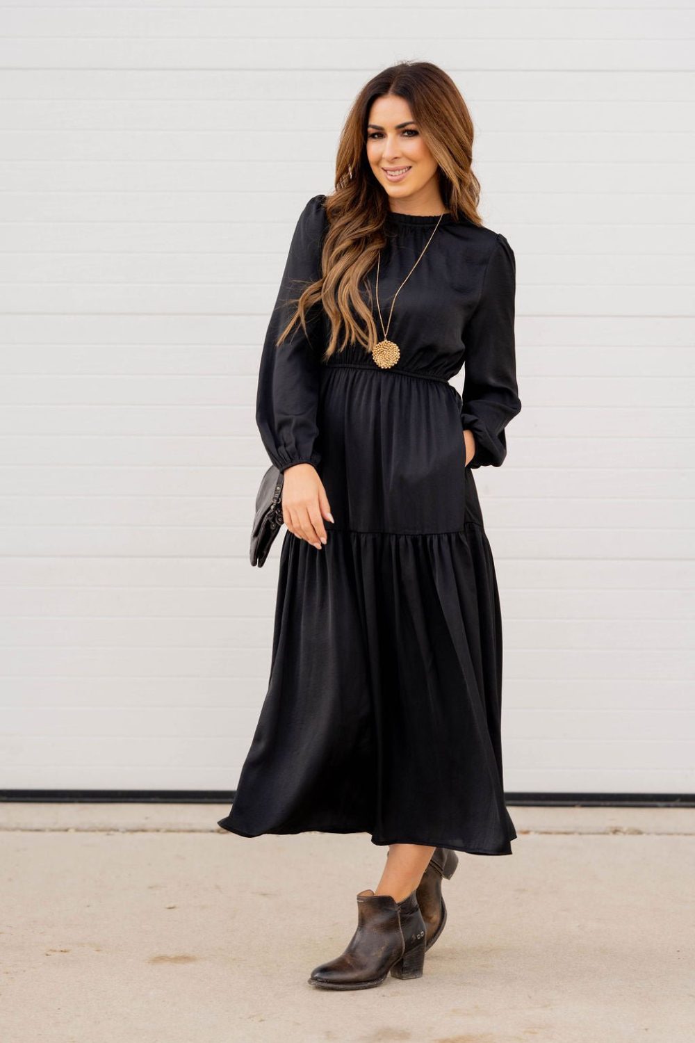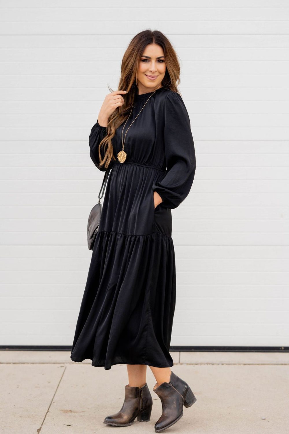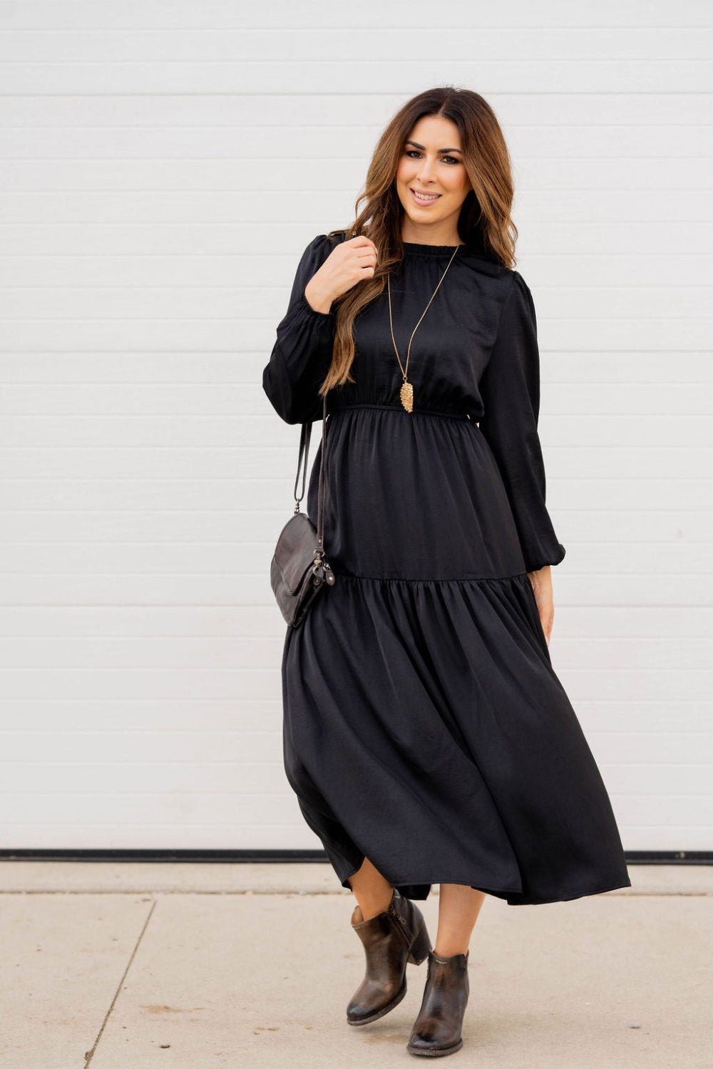 This stunning maxi dress is perfect for every event or occasion! The tiered style, slimming cinched waist, cinched neckline, and the balloon sleeves all come together seamlessly to create this classy dress! Whether you’re going to work, a wedding, holiday party, church, or date night, we just know you will turn heads!