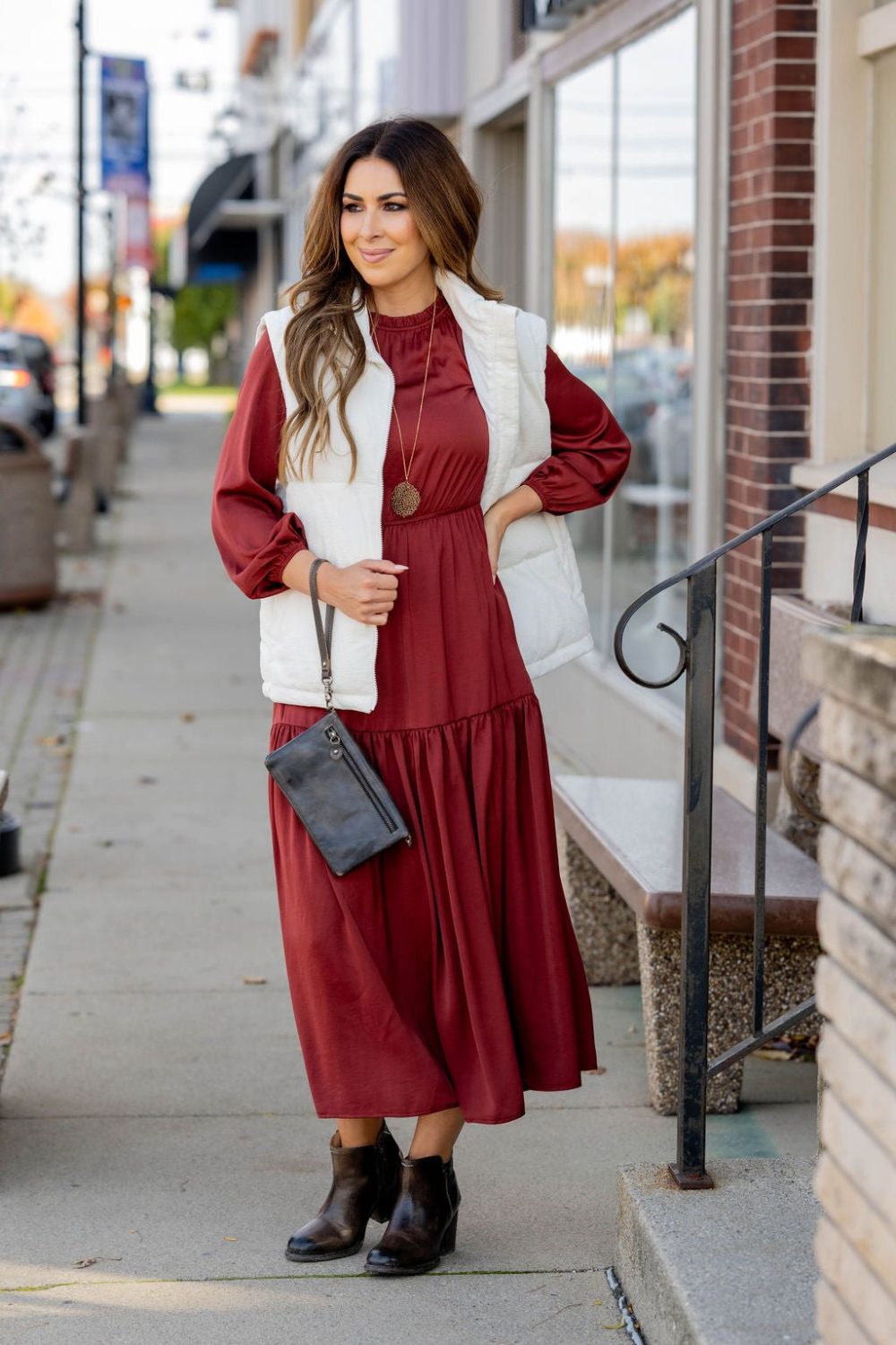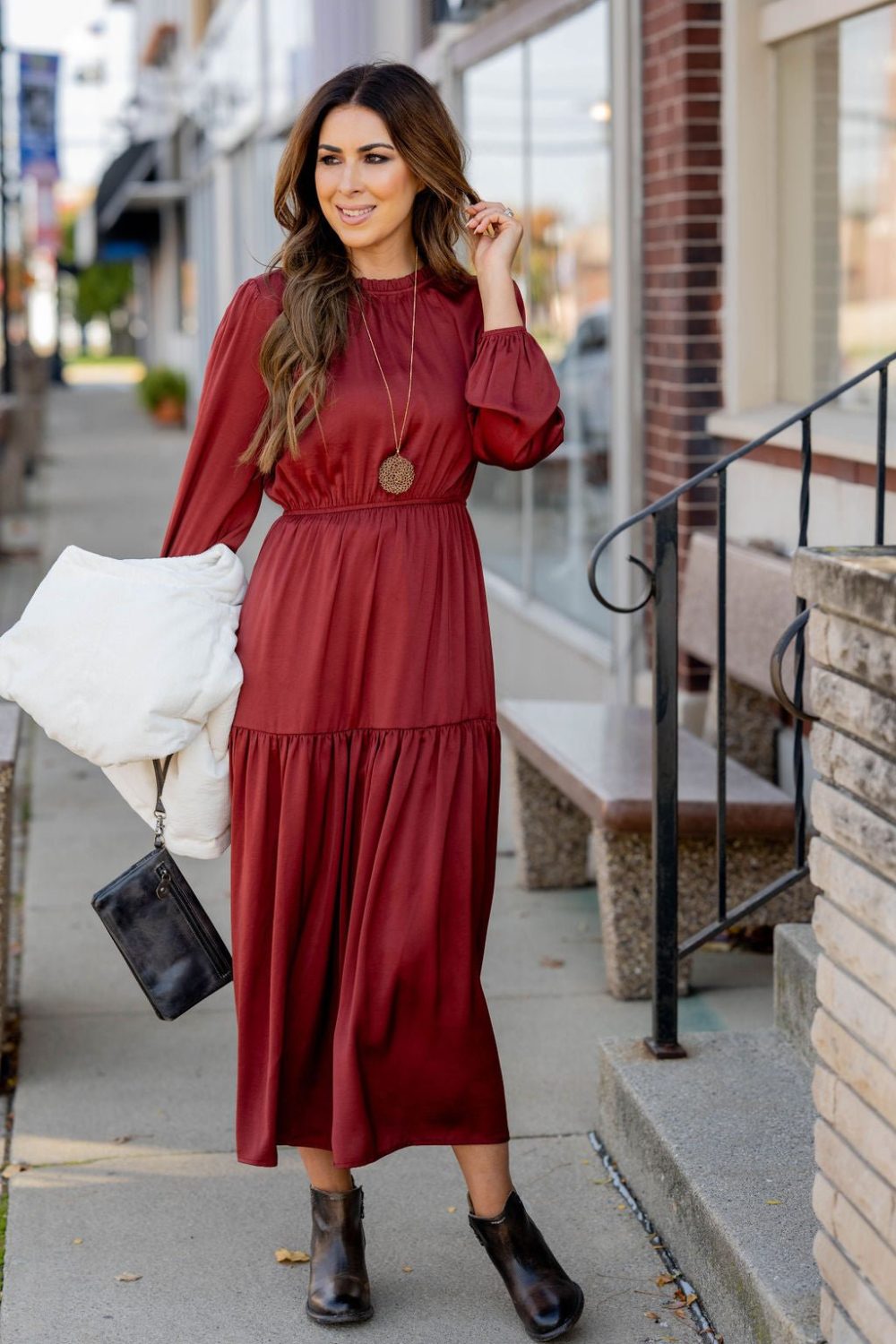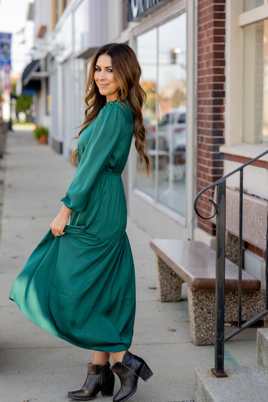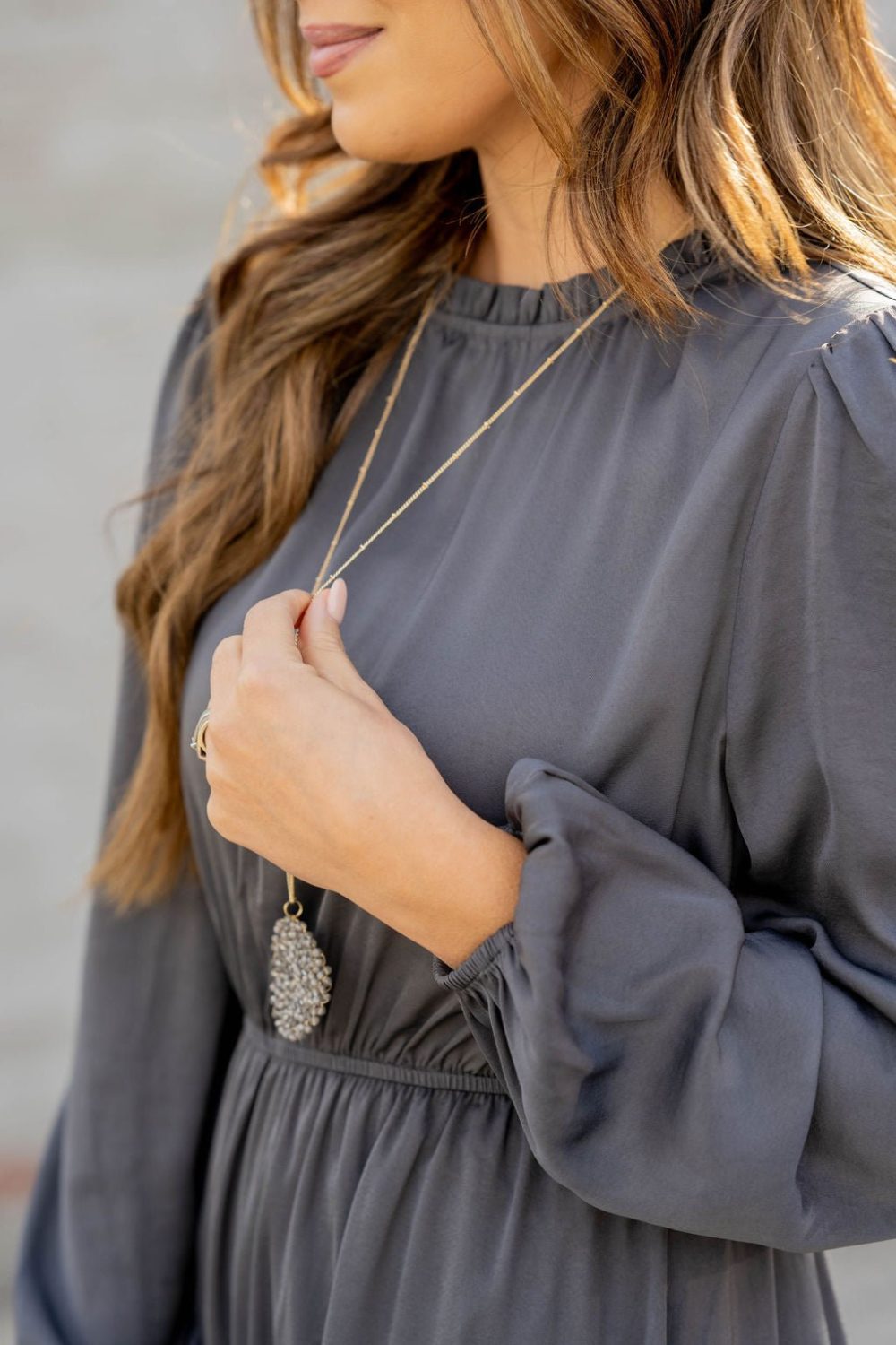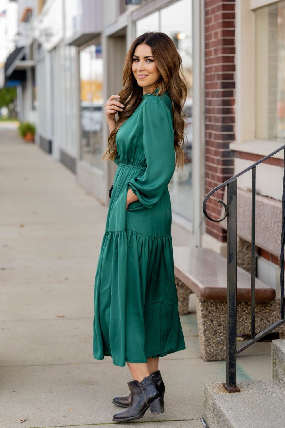 This stunning maxi dress is perfect for every event or occasion! The tiered style, slimming cinched waist, cinched neckline, and the balloon sleeves all come together seamlessly to create this classy dress! Whether you’re going to work, a wedding, holiday party, church, or date night, we just know you will turn heads!