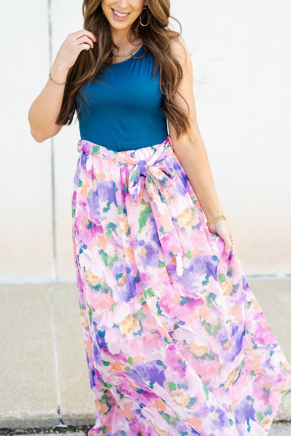 Bring on the warm weather with this bright, floral maxi dress! We love that this dress looks like it is a tank and a skirt paired together. Simply add your favorite accessories to take you anywhere from work, to church, to a wedding, or date night with ease! Chilly? Add a blazer, cardigan, or jacket to this for the cooler months! Wherever you wear this, you are sure to turn heads!